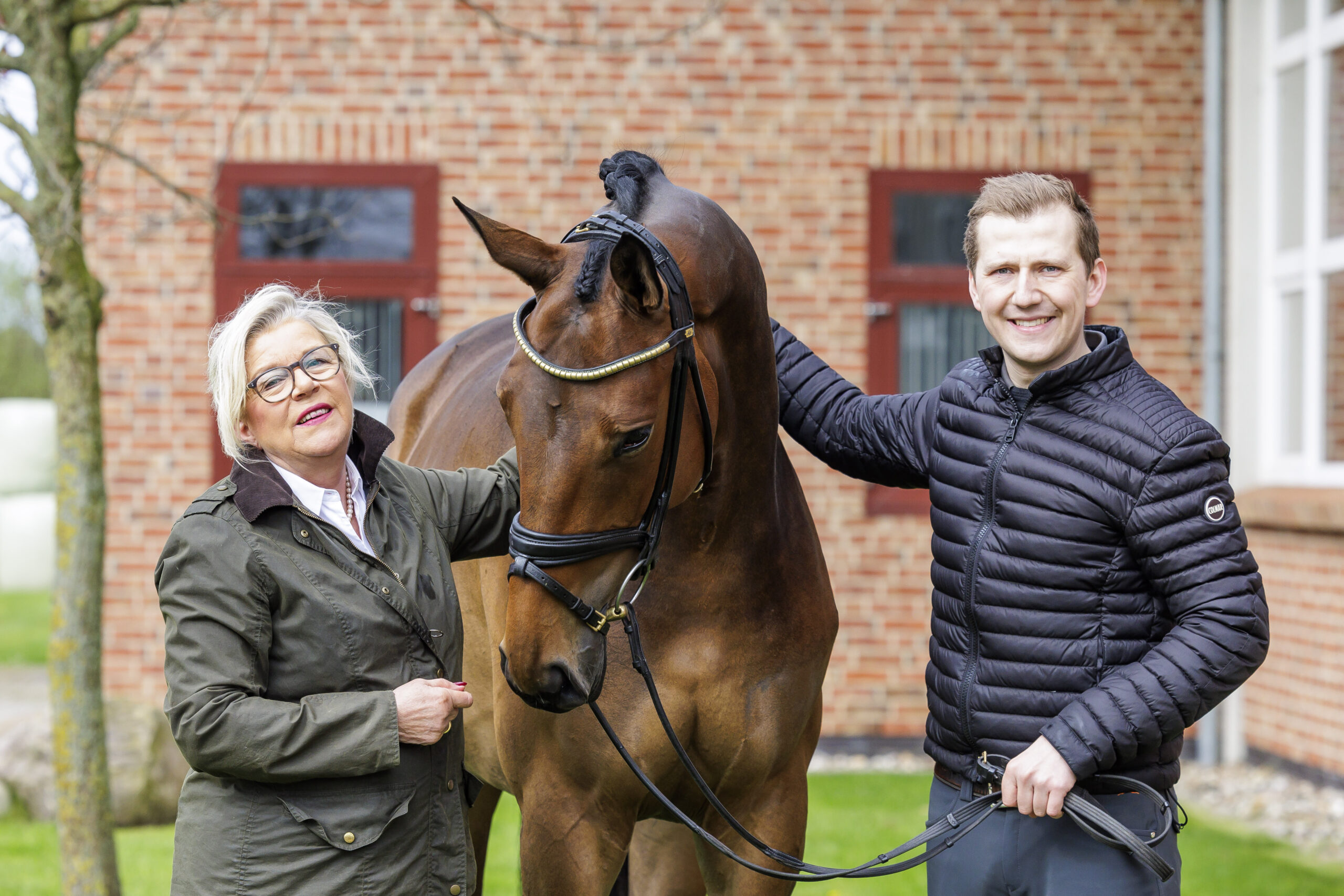 Annette Kleinfeld und Moritz mit ihrer kapitalen Kaiser`s Ava Aurora (v. Easy Game), einer Vollschwester des Siegerhengstes Easy Game, die sie als Fohlen in den Niederlanden erwarben und die in Brodersdorf groß geworden ist.