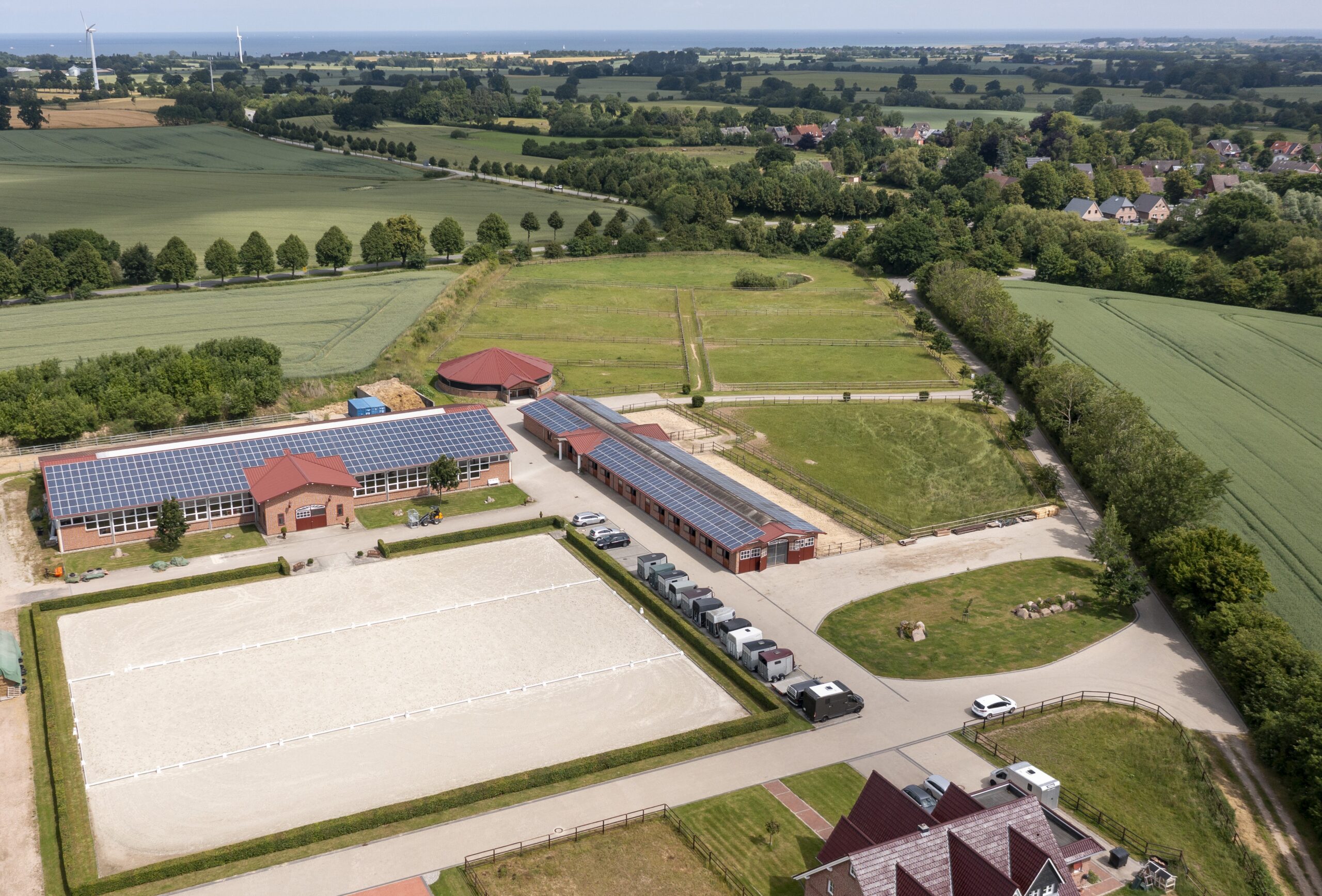 So wurde 2010 auf eigenem Land vor dem Dorf der Grundstein gelegt für das Gestüt Brodersdorf. Alle Beteiligten ergänzten die Planung und den Bau mit ihren Erfahrungen aus eigener Praxis, um eine wirklich besondere und innovative Idee zu realisieren. Im Dezember 2011 zogen die ersten Pferde ein und inzwischen steht mit Meister Moritz Gehrmann als gelernter Berufsreiter und Jasper Gehrmann als gelernter und studierter Landwirt schon die nächste Generation in den Startlöchern, um auf der Basis des gelungenen Projekts die Akzente für die Zukunft zu setzen.