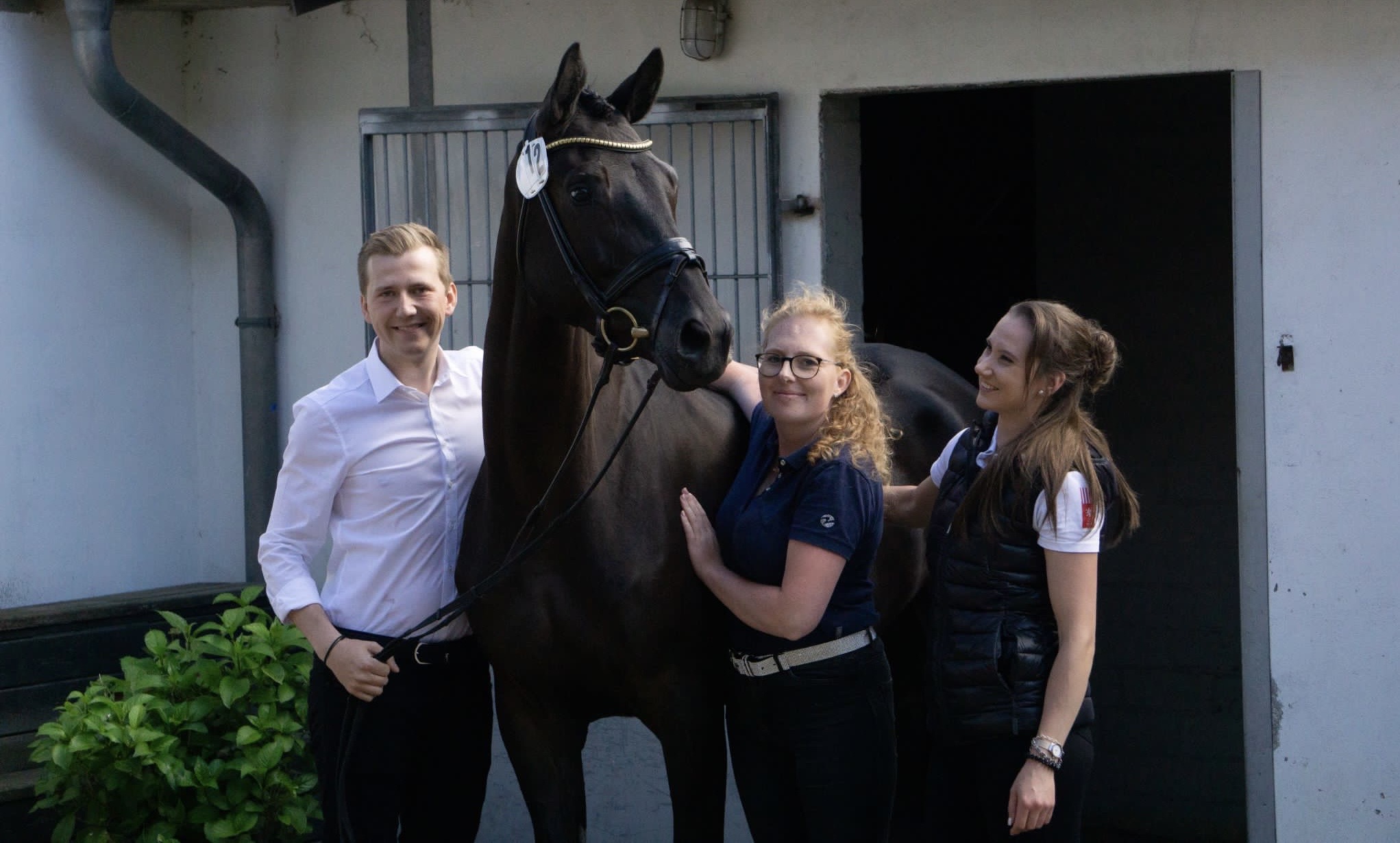 Das Dreamteam für die Präsentation junger Stuten (v.r.) Sarah König, Julia Fuchs und Moritz Gehrmann.