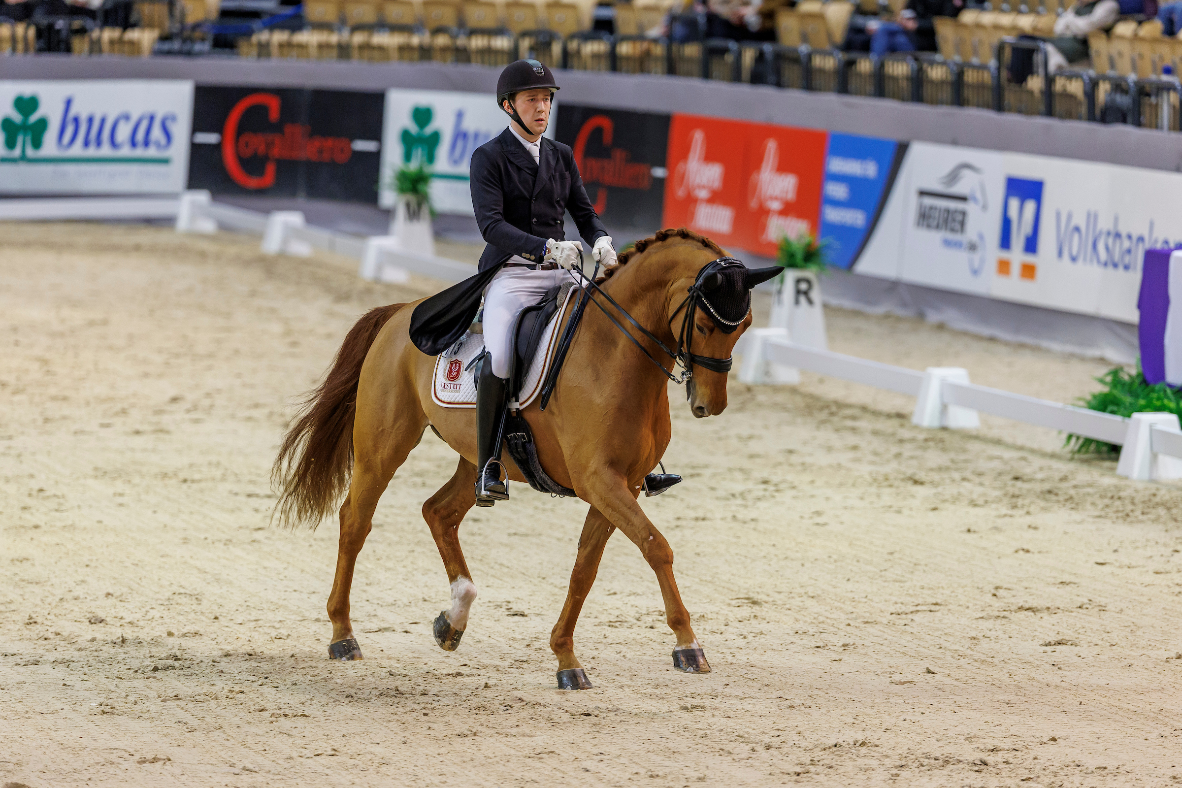 Erster internationaler Auftritt von Moritz und Feu D´Amour in der Holstenhalle von Neumünster 2025 mit zwei Platzierungen.