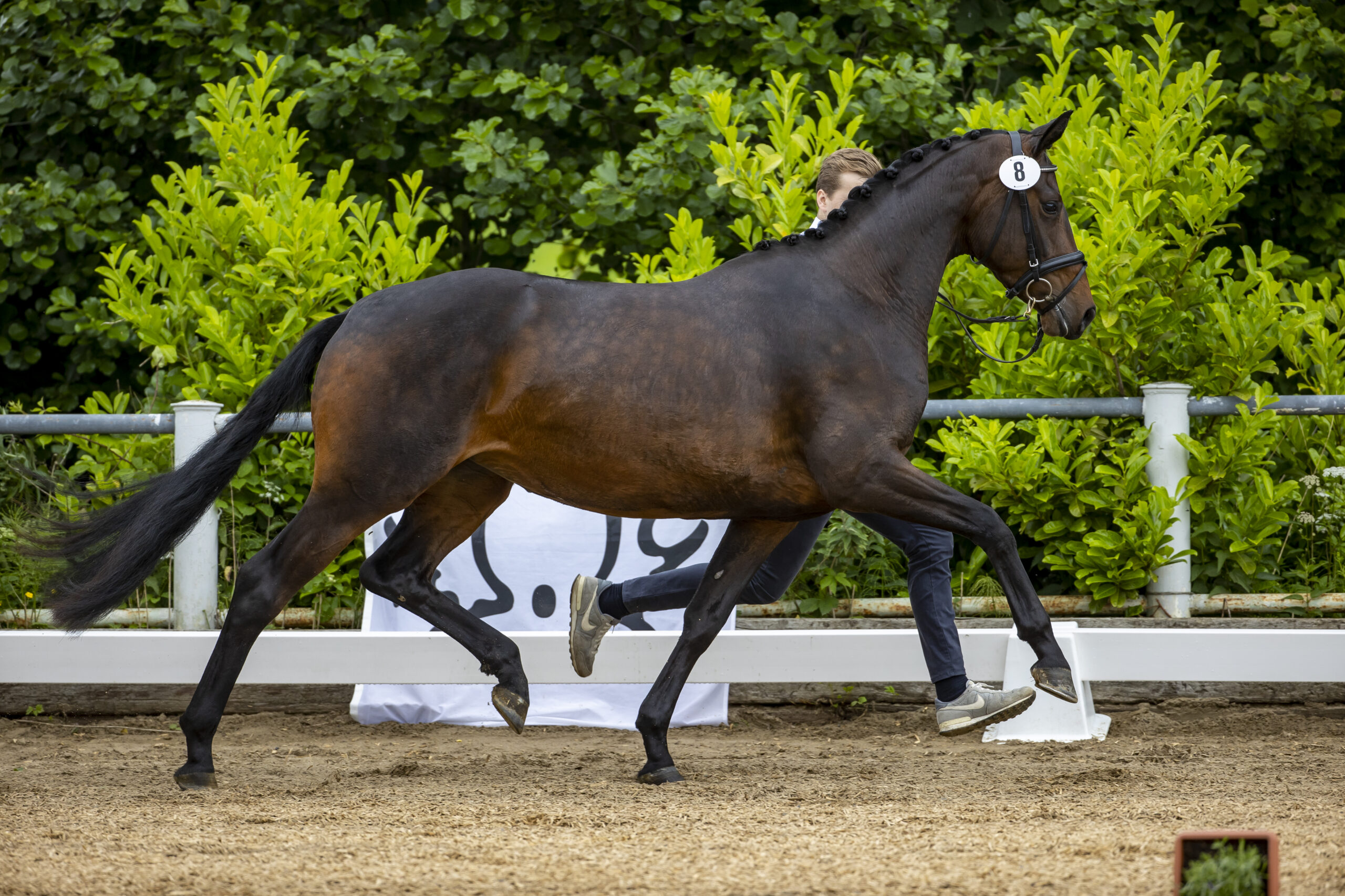 Goldfieber (v. Le Rouge) gewann seinen Veranlagungstest in Schlieckau 2022 mit der Endnote von 8.68.